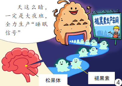 图4:光照弱时,脑内的松果体会加速分泌褪黑素,帮人体切换到休息状态。