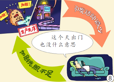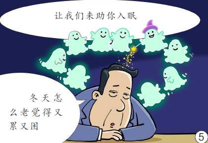 图5:冬天日照时间短,松果体超额工作,褪黑素“产能”过剩,便让人总觉得困倦乏力、没精神。